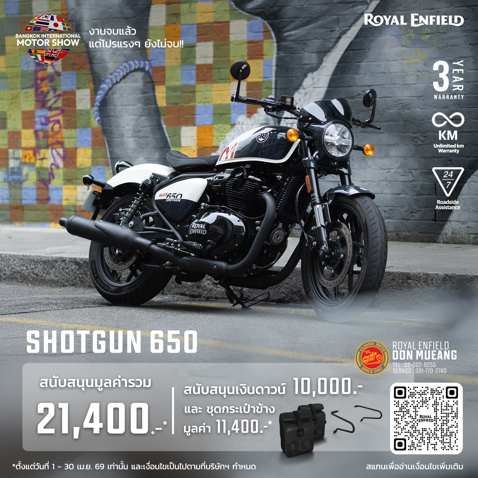 -Shotgun 650 สนับสนุนเงินดาวน์ 10,000 บาท ฟรี ชุดกระเป๋าข้างพร้อมขายึด มูลค่า 11,400 บาท ทุกสี