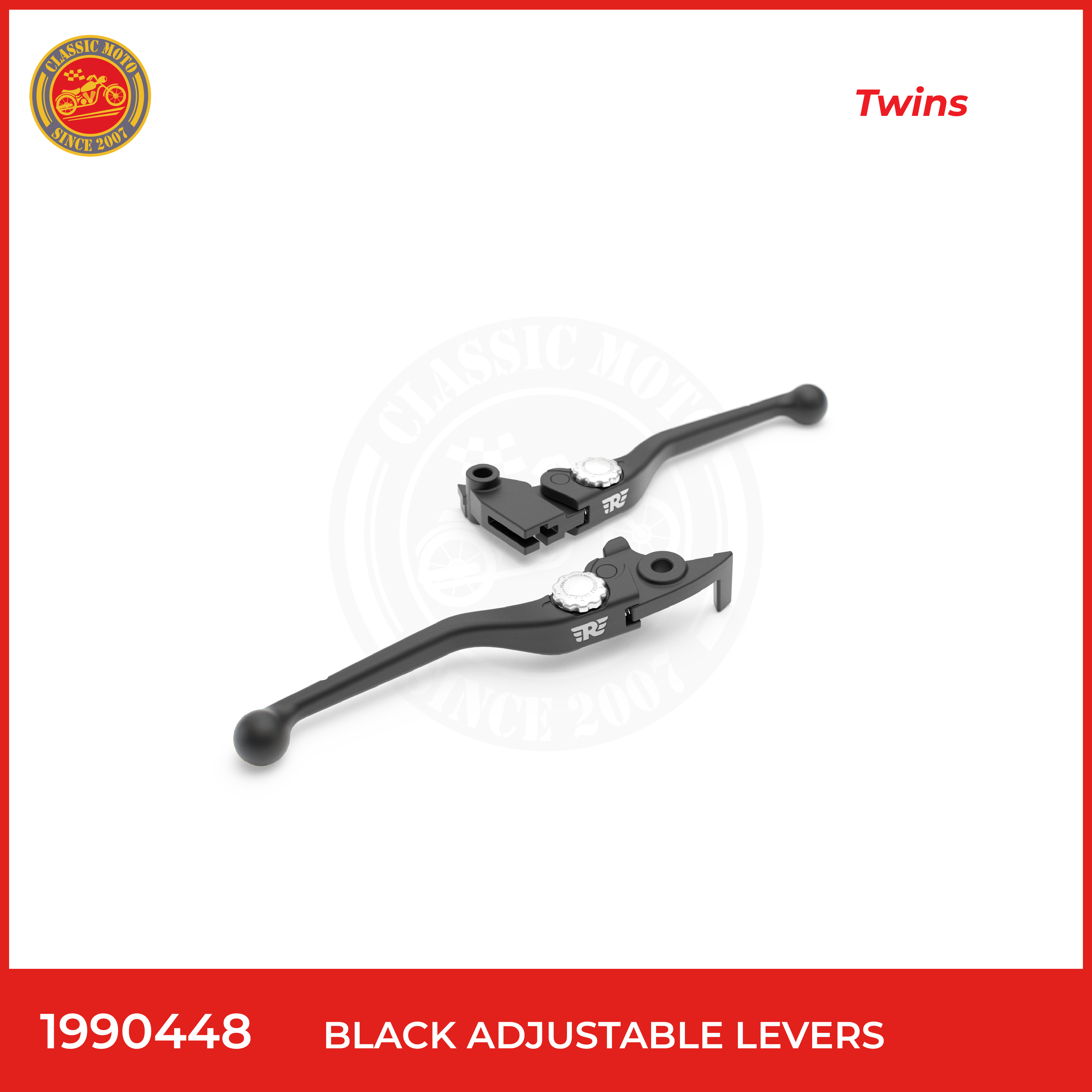 ชุดเบรคและคลัทช์อลูมิเนียมกลึง CNC สีดำแทนที่มาตรฐาน คันโยก ปรับระดับได้สูงสุด เพิ่มความรู้สึกและการควบคุมคลัตช์และเบรก และโรยัล เอ็นฟีลด์แกะสลักด้วยเลเซอร์